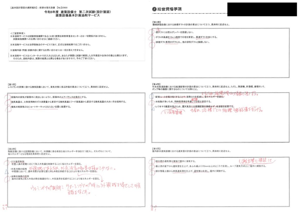 #015 R6年建築設備士二次試験 必須問題(基本計画)無料添削サービス Uncategorized X Facebook はてブ Pocket LINE コピー 2024.11.082024.11.11 参考までに、必須問題(基本計画)無料添削サービスを掲載します。 ○→31△→4✕→1